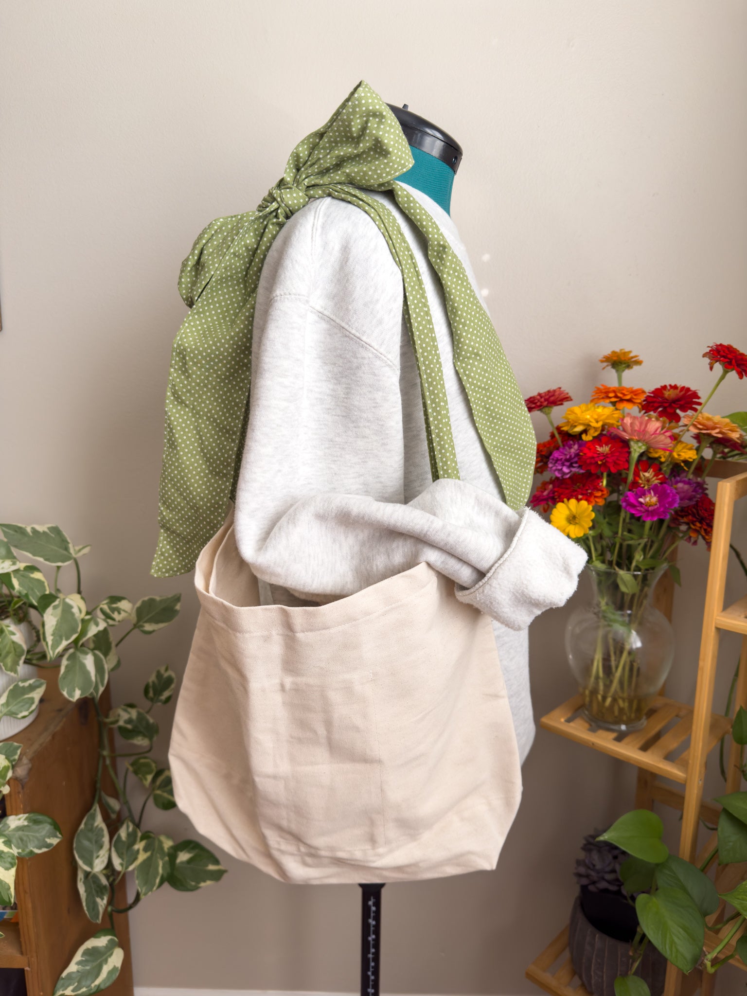 Tote bag with adjustable tie straps