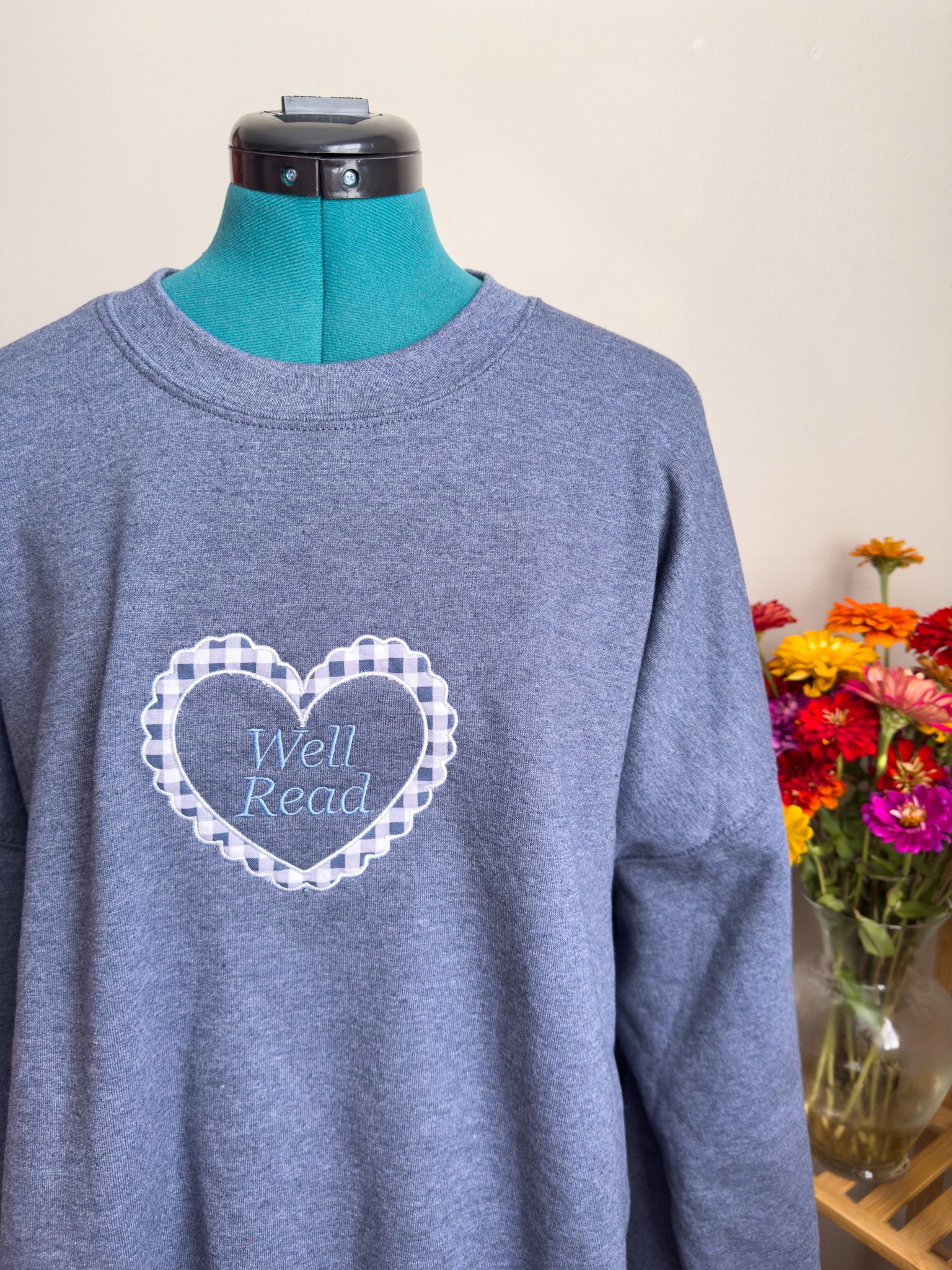 Blue Well Read Appliqué Crewneck
