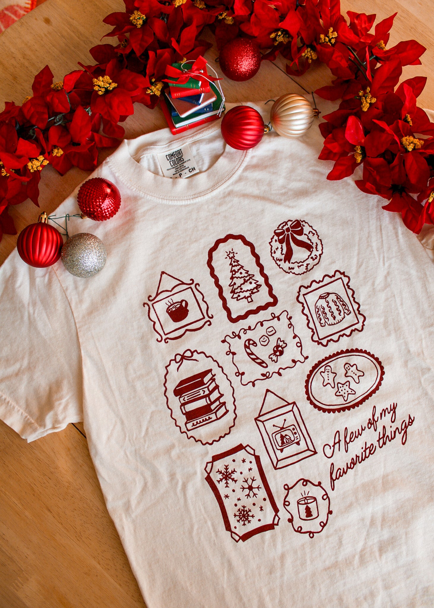 Hand drawn graphic screen printed in dark red ink on ivory Comfort Colors tee